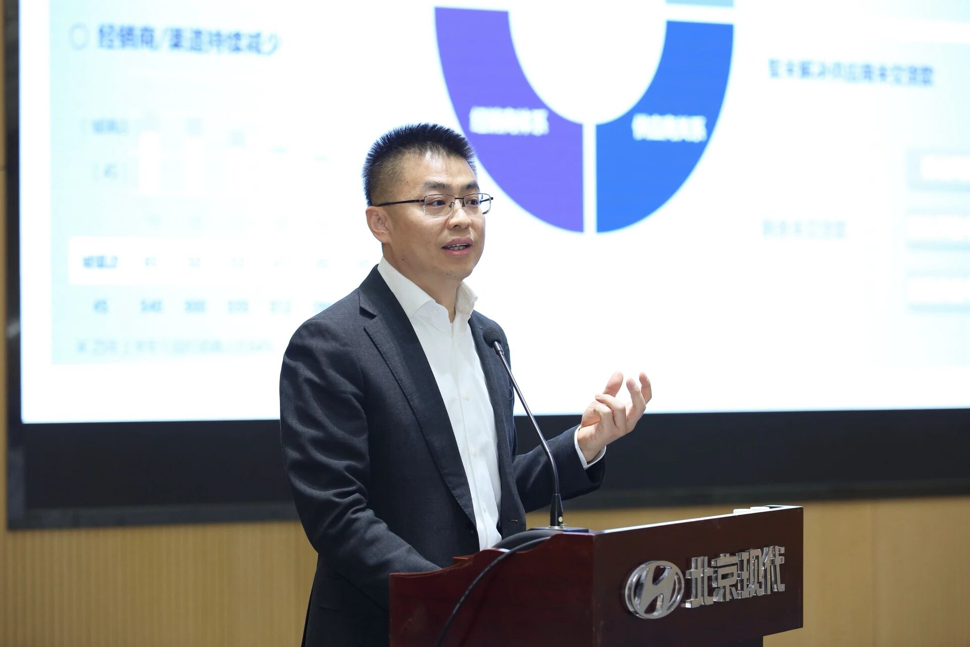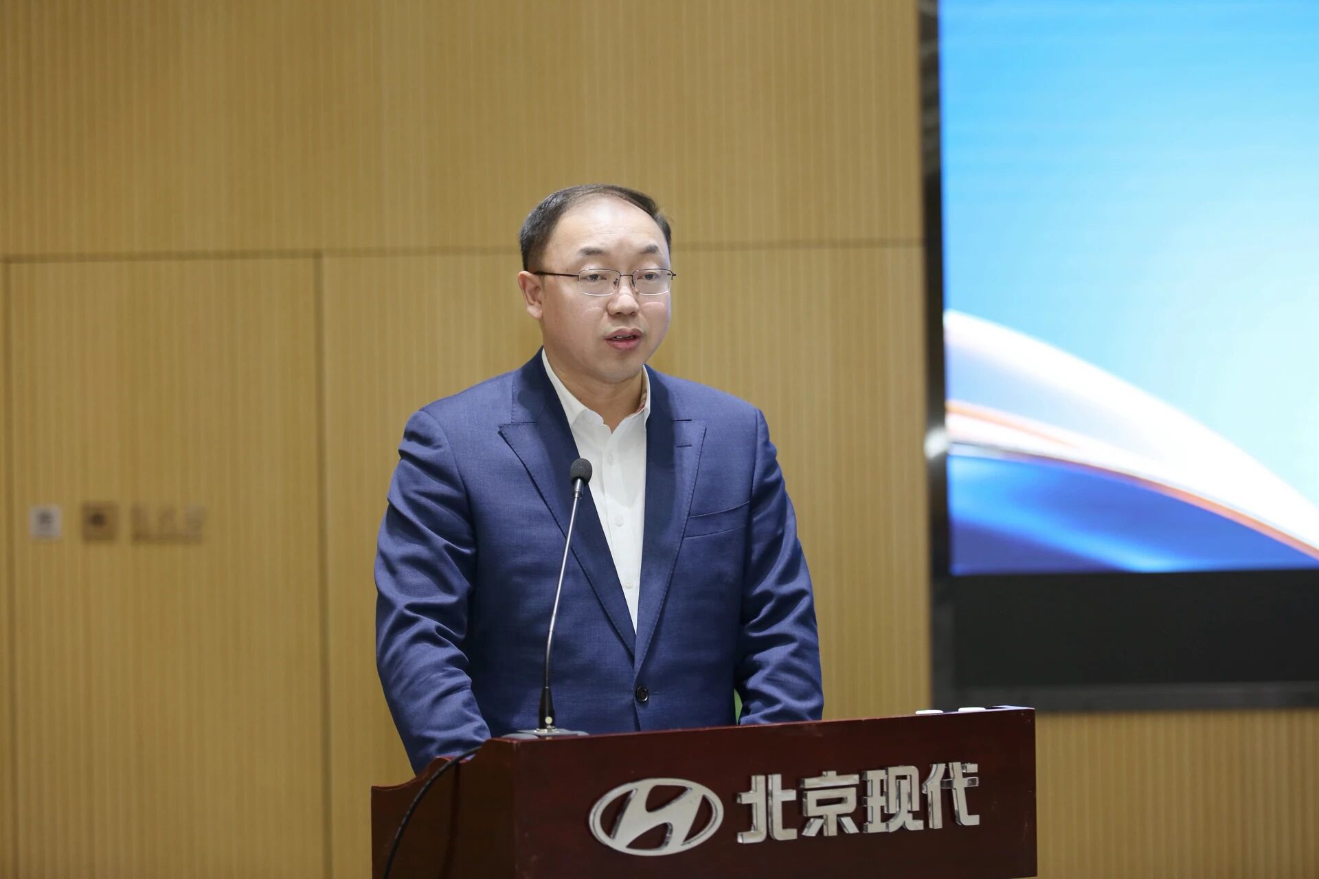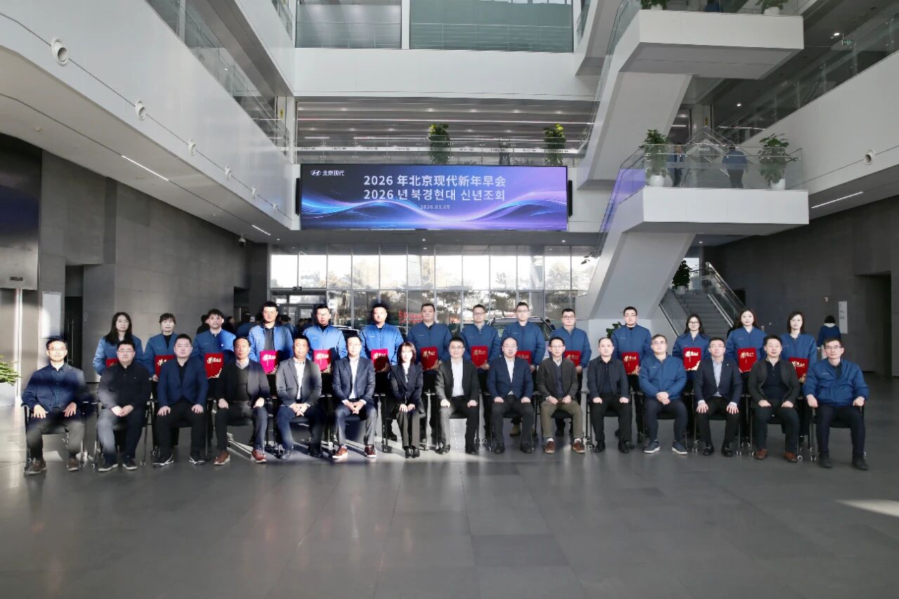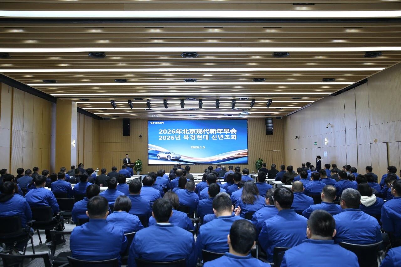近日,北京现代2026年新年早会顺利召开。北京现代总经理李凤刚,北京现代党委副书记、常任副总经理李双双出席会议。北京现代经管会成员、科长级以上领导干部及优秀员工代表现场参会。会议由公司副总经理、管理本部长田丁主持。