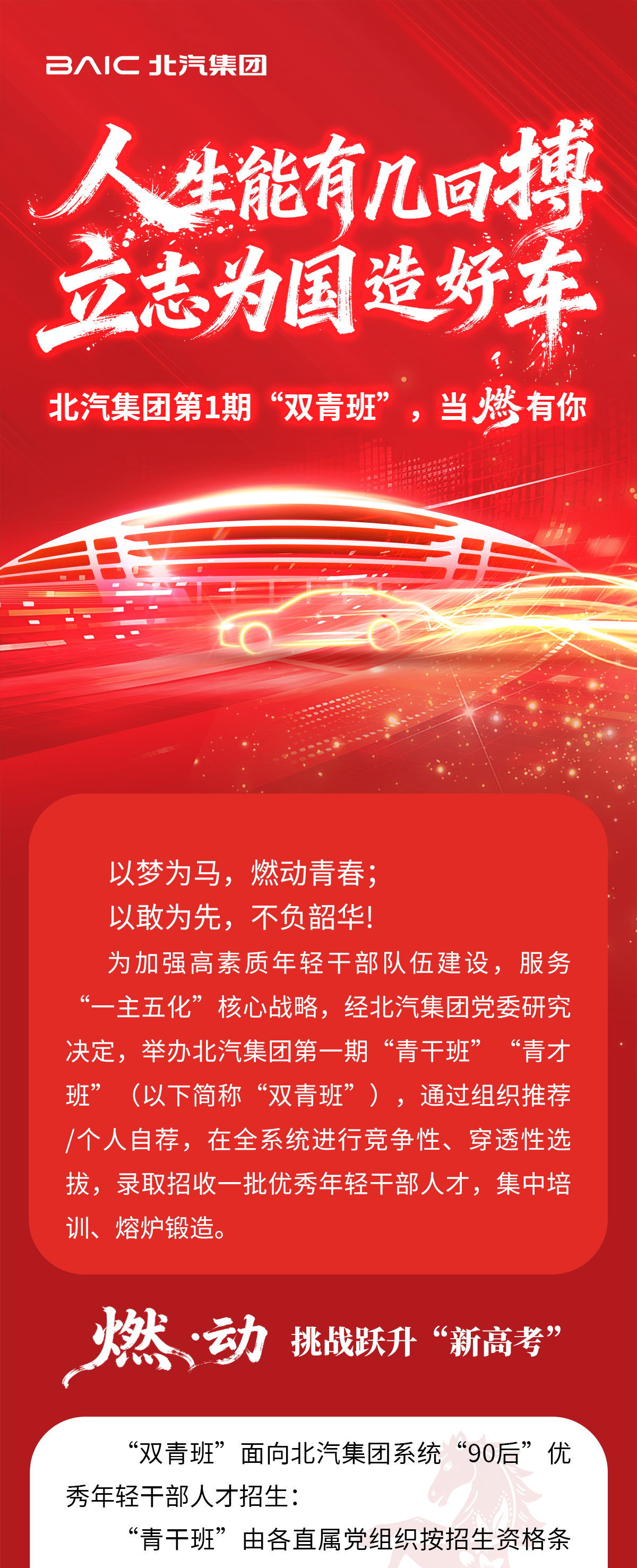 北汽集团第一期“双青班”招生,以梦为马、奔赴新程